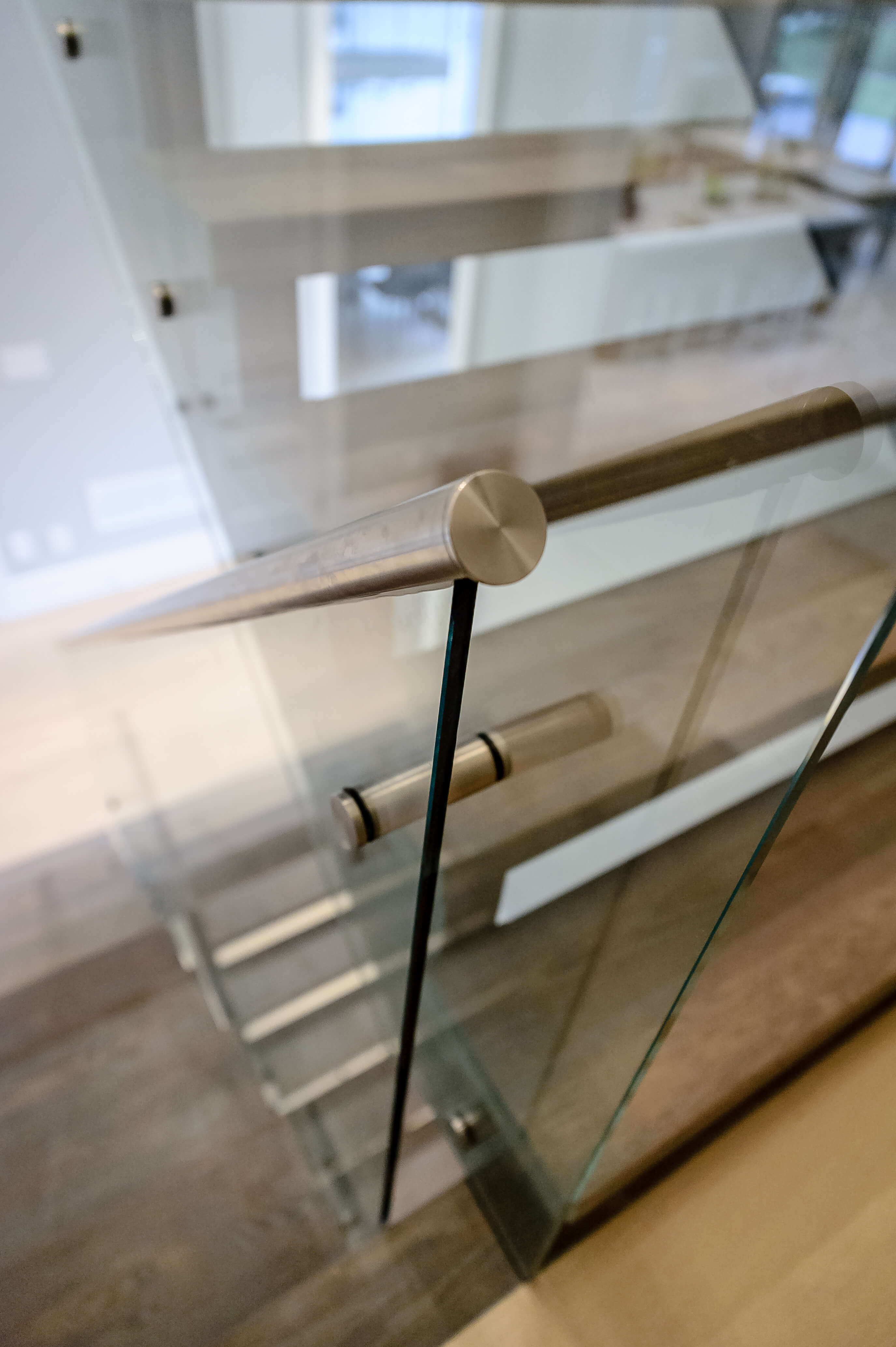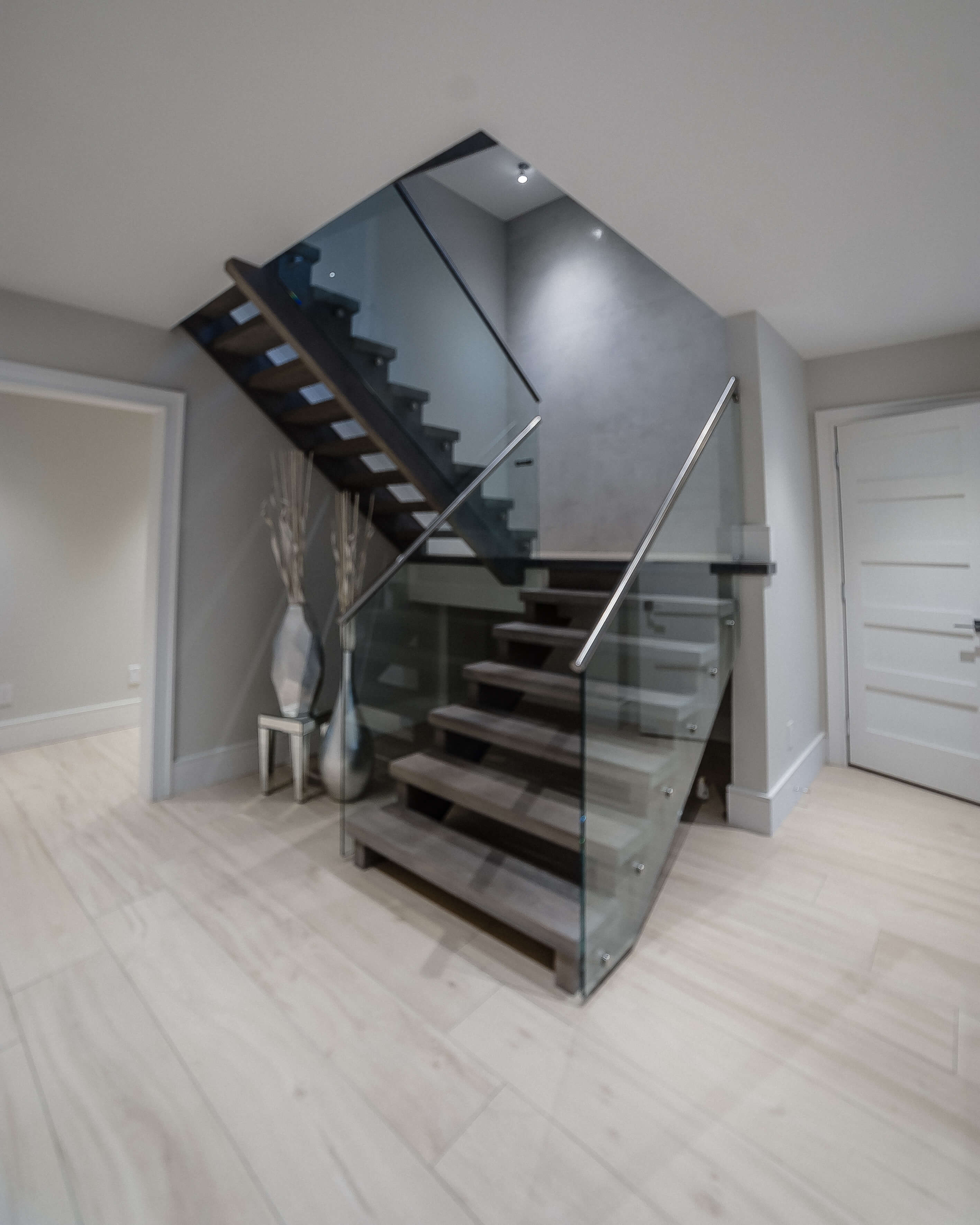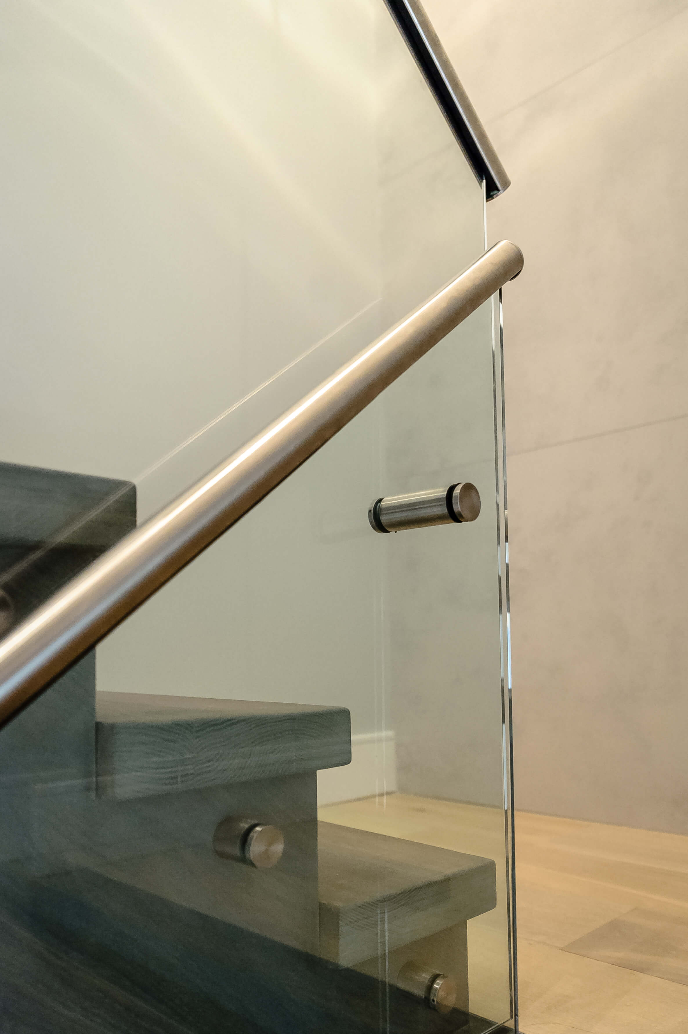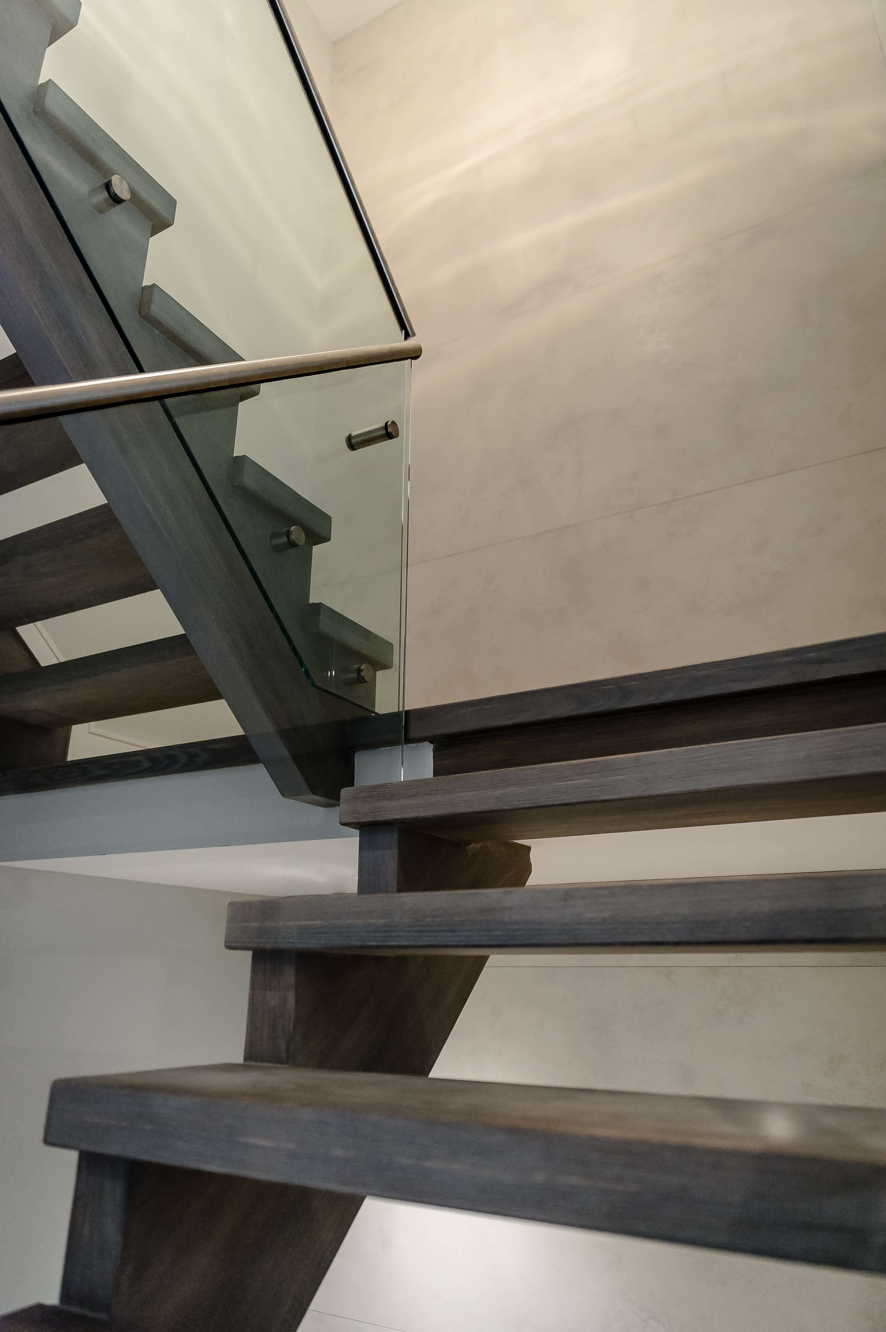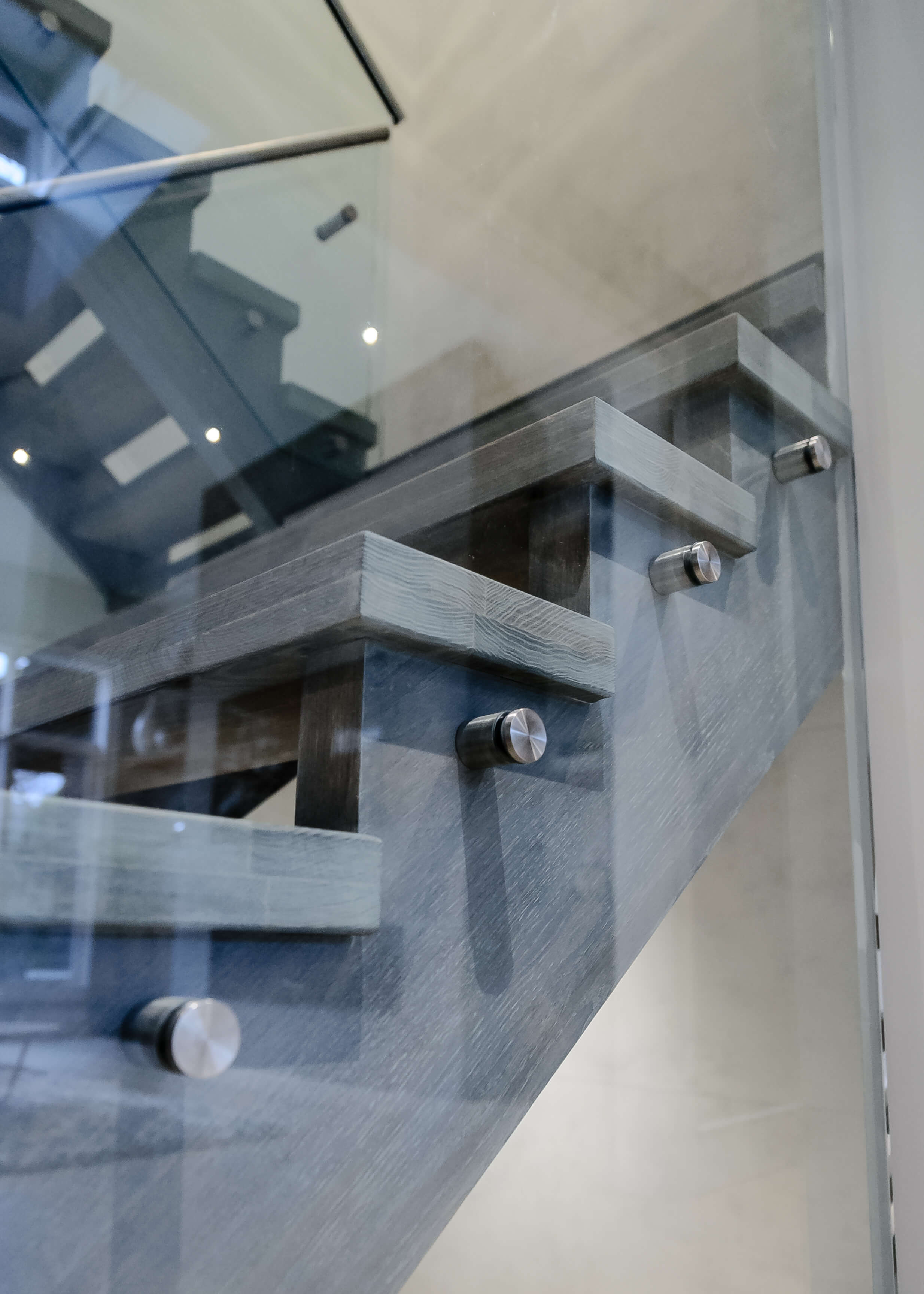 “It’s very important to make the glass panels line up with the panel of the next stair, as any imperfection is very noticeable when installing modern stairs,” John explains. “We always make plywood templates of the panels first in order to ensure perfect fit and alignment. Then we get our glass parts from Accura, who give us great service and excellent product, time after time.”